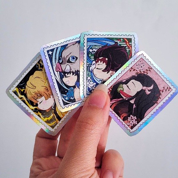Sticker de vinilo holográfico, en impresión UV. Resistente al agua.