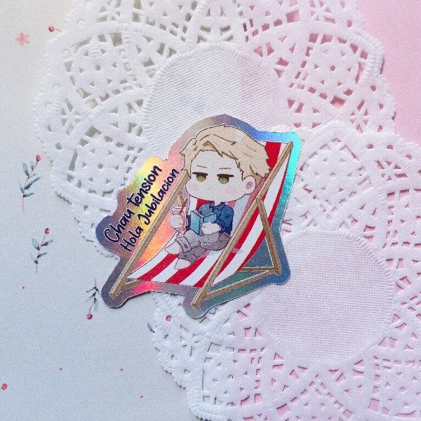 Sticker de vinilo holográfico, en impresión UV. Resistente al agua.